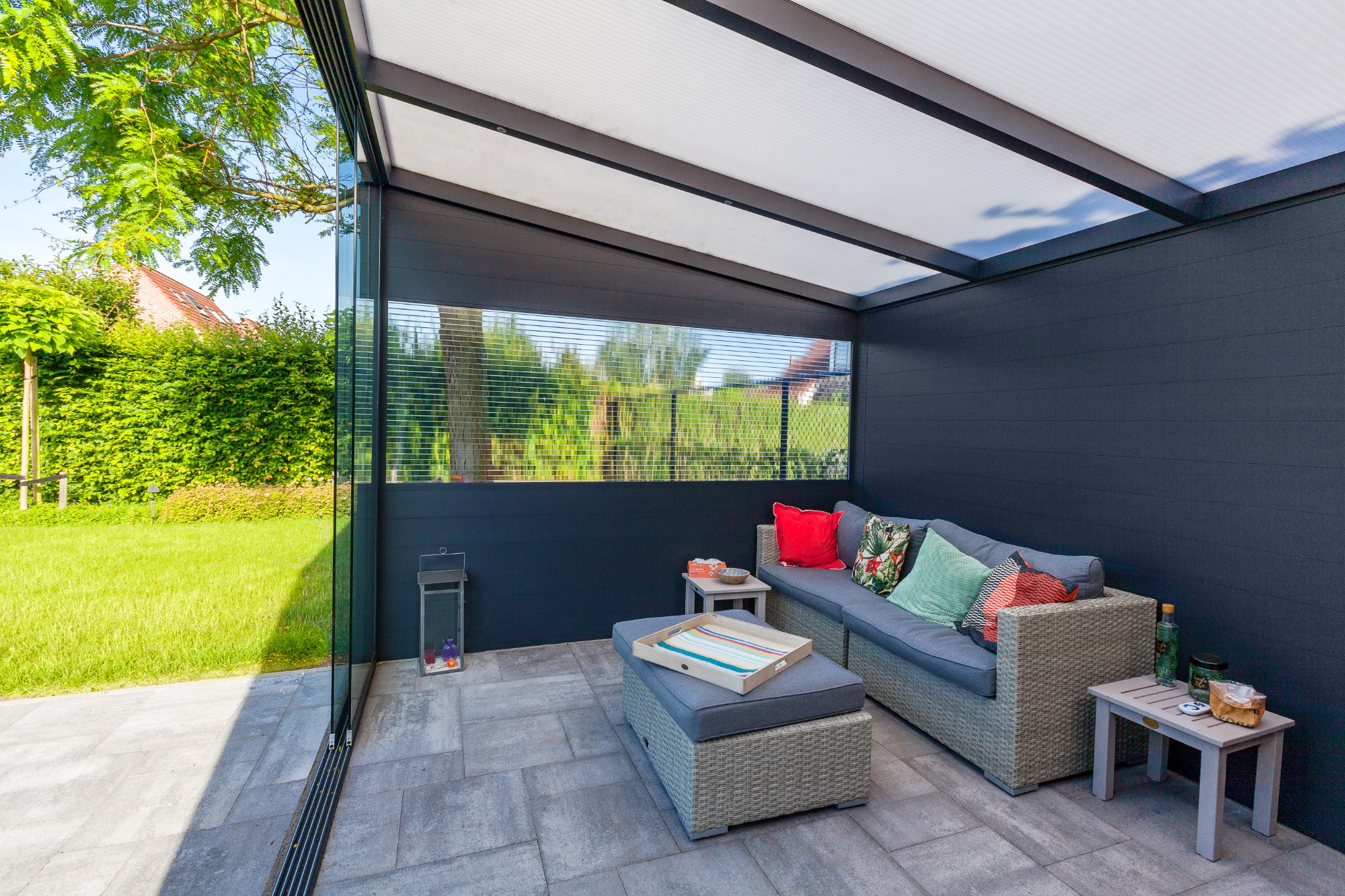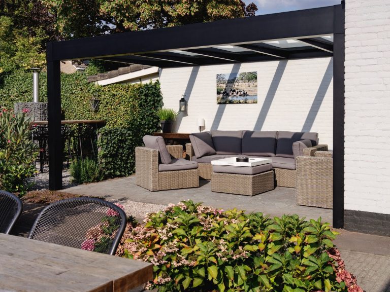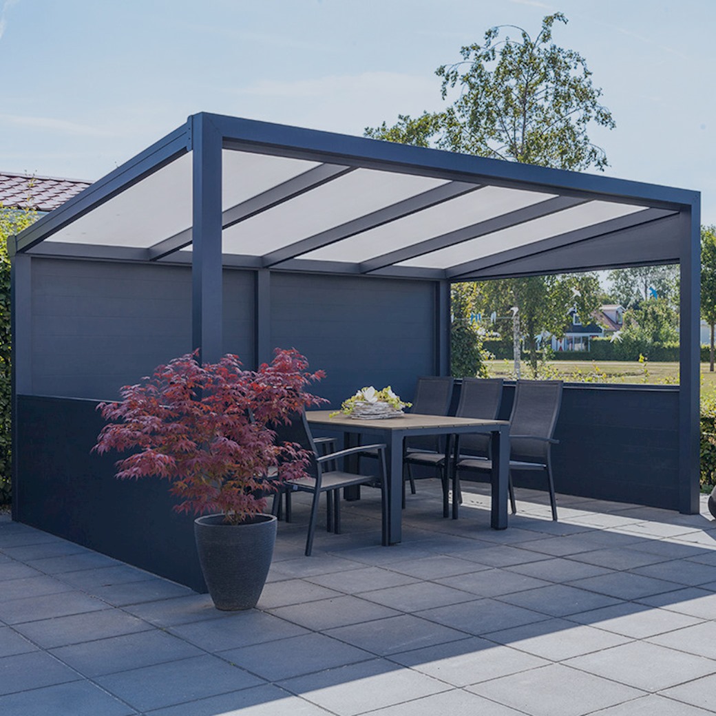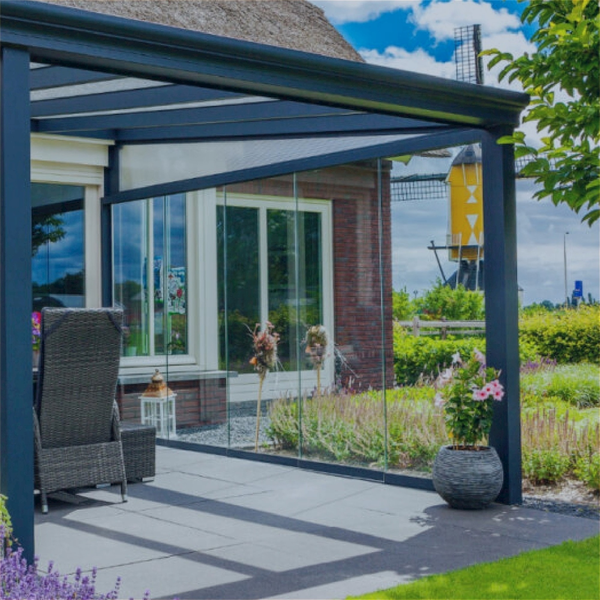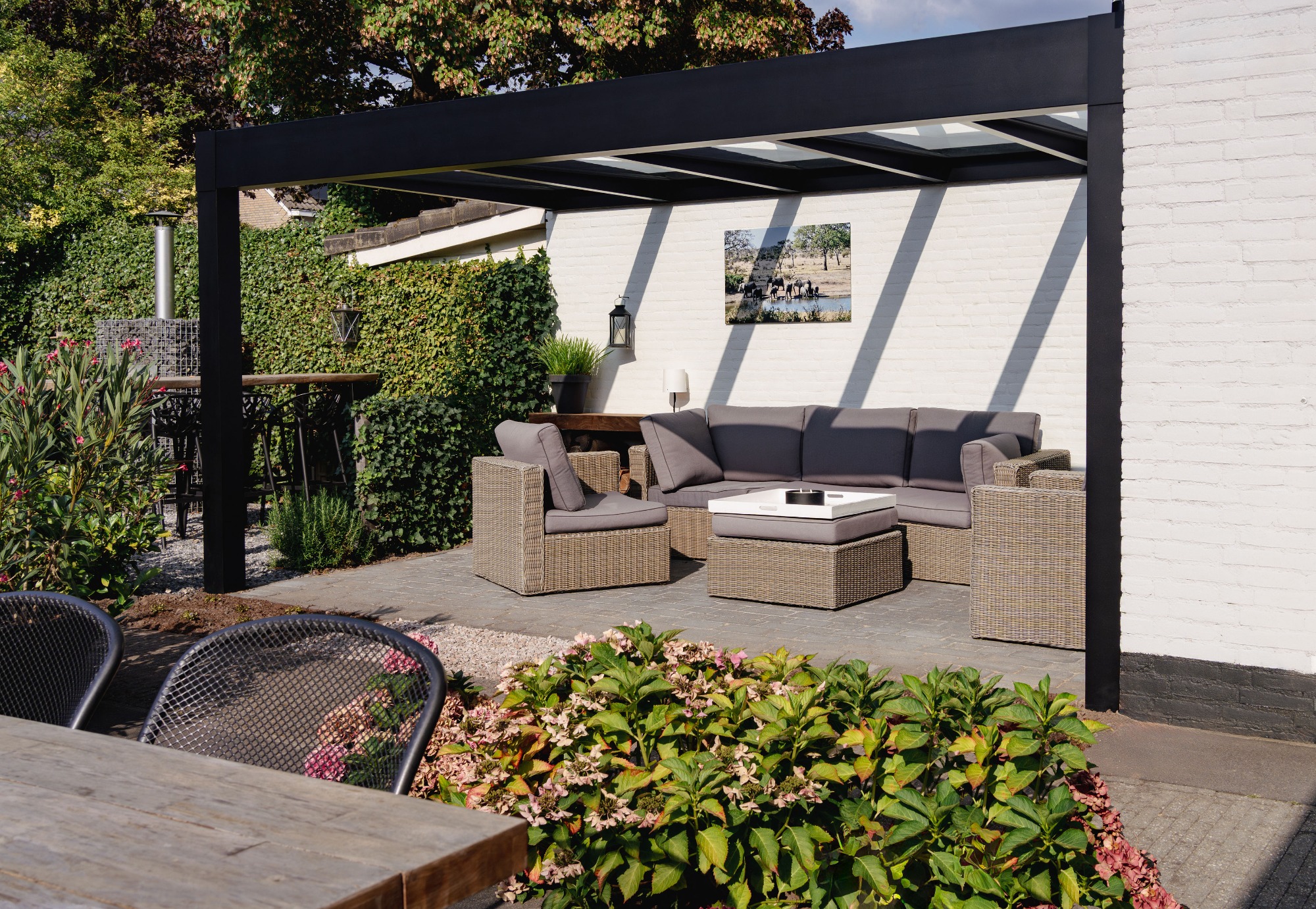 An eye-catcher for every garden and terrace. Inspired by cubist shapes, the Trebbiano offers an elegant and modern solution to connect indoors and outdoors. A pleasant outdoor space to relax and enjoy under all circumstances. The glass roof covering makes it even more beautiful.