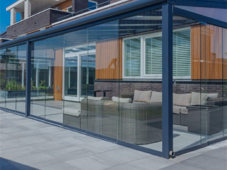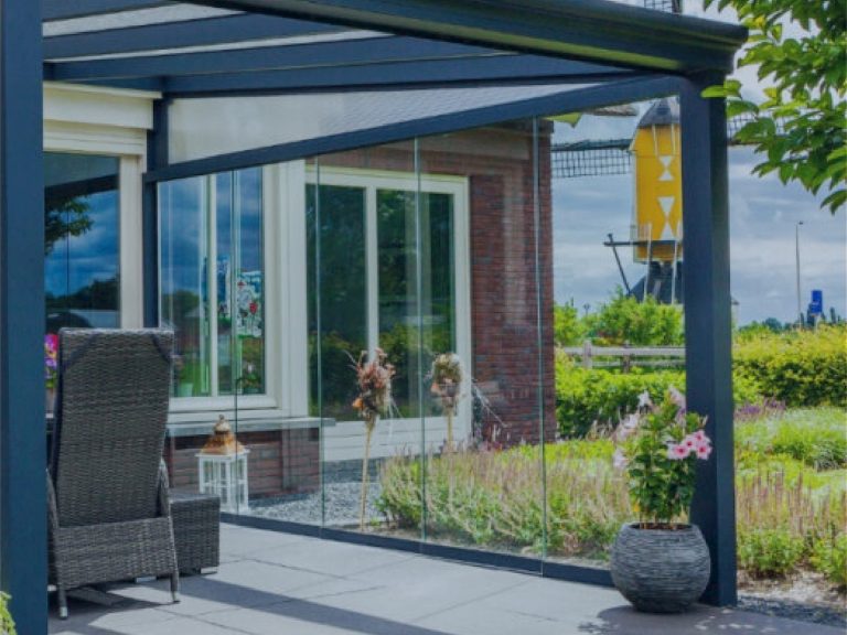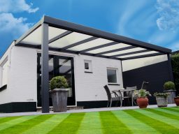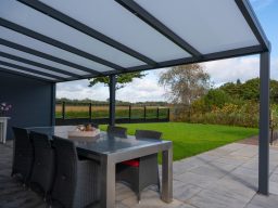 The Deponti Giallo Veranda is known for its smooth, robust look and is equipped with a reinforced gutter profile. Because of this extra reinforcement the Giallo can be mounted with just two posts with a span of 6 metres. The result is maximum enjoyment with a free and open view.