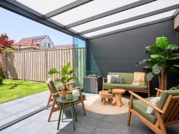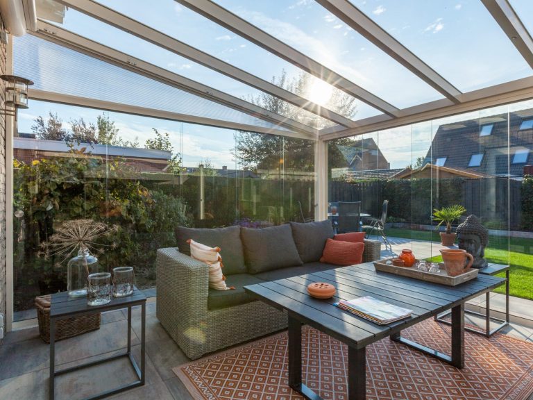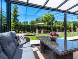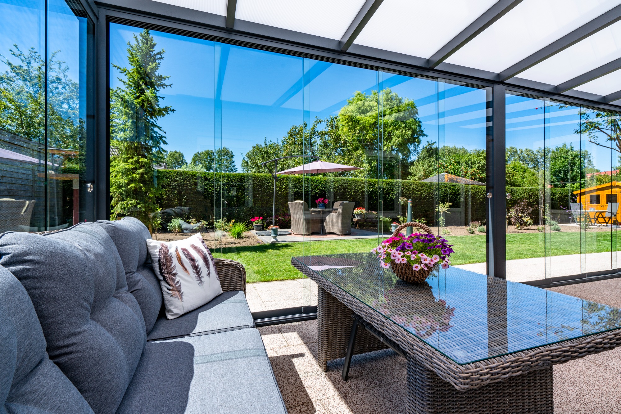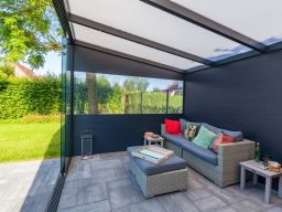 Discover the modern character of this cubic roof. The Pinela Glass stands out for its clean and stylish design. The glass roof, with extra-wide glass panels, creates an abundance of natural light. This veranda offers an impressive maximum span of 7 meters on just 2 uprights. As a result, you will experience a stylish veranda with a crystal-clear and spacious feel.