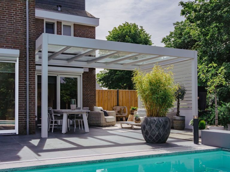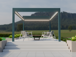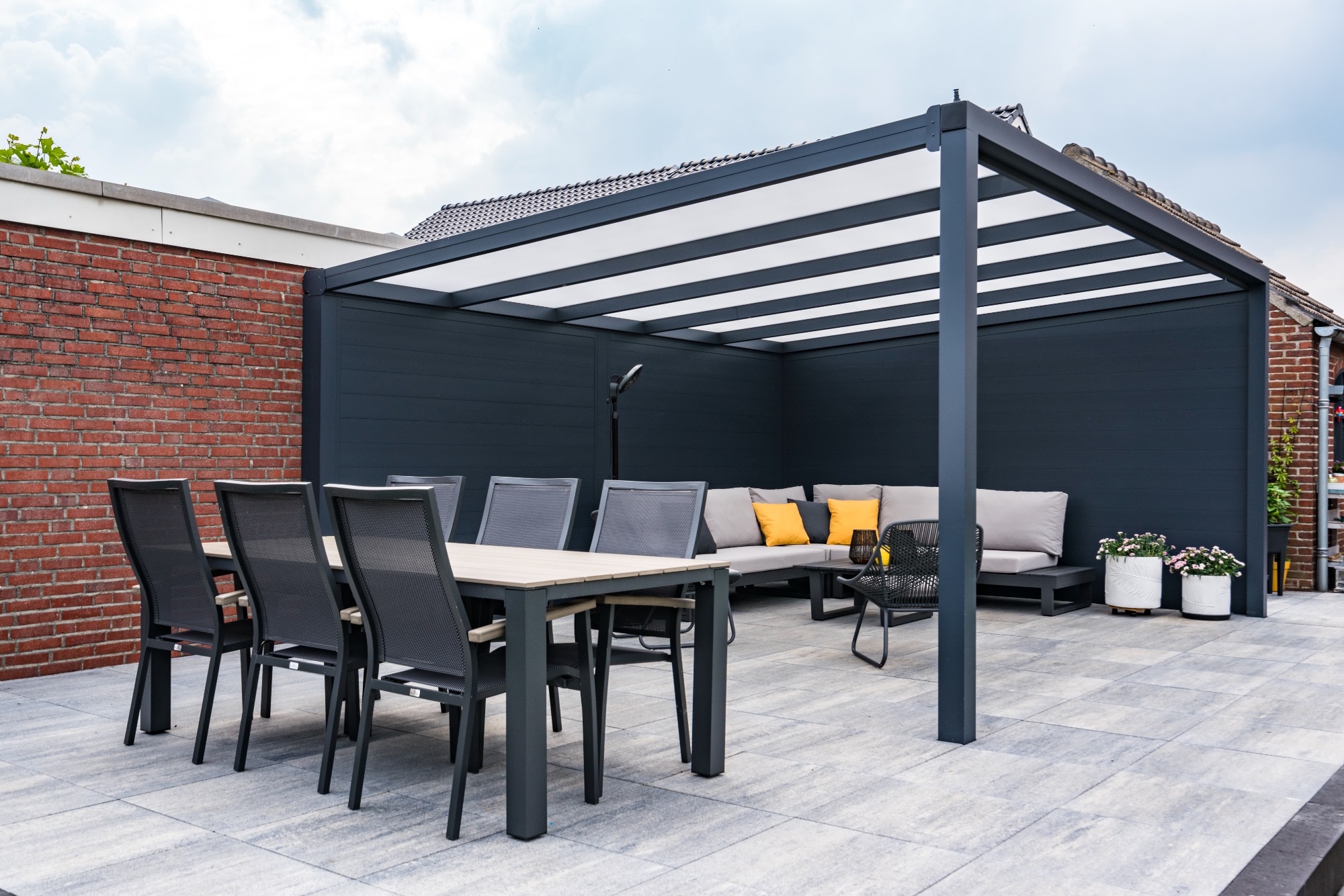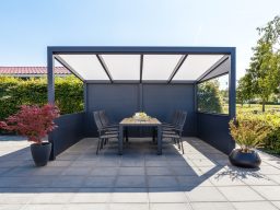 Experience the beauty of nearby nature in your own environment, at the touch of a button. Operate the slats of the Pinela Deluxe Plus effortlessly, even from a distance. Enjoy maximum natural light under this convertible roof. The wide slats reinforce the entire structure, giving you extra protection from various weather conditions. When closing, the slats simultaneously exert pressure on the gutter rubbers. This results in optimal protection. Discover the perfect outdoor space, ready to face any season.